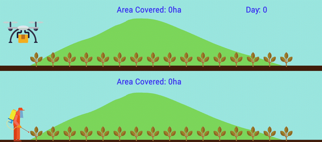 人力での作業時間と比較して約10倍のスピードで散布が可能