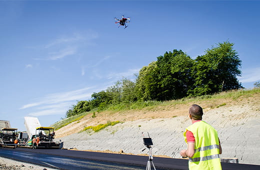 ドローンやその他3次元測量の最新技術を活用し、インフラ建設時の測量や維持管理の点検などの計測サービスを提供