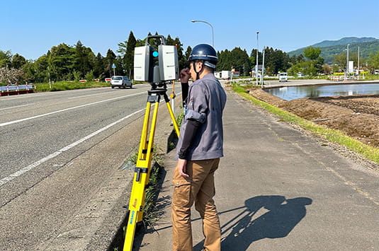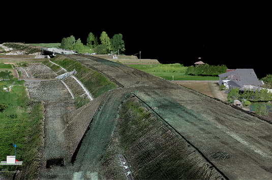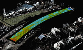 レーザースキャン等により、短時間で面的(高密度)な3次元測量を実施。
