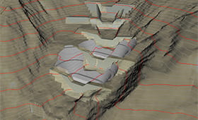 3次元設計データと事前測量結果の差分から、施工量を自動算出。