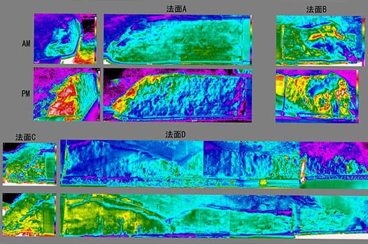 UAV搭載サーモカメラで高所コンクリート吹付法面の老朽調査
