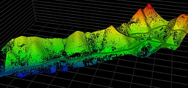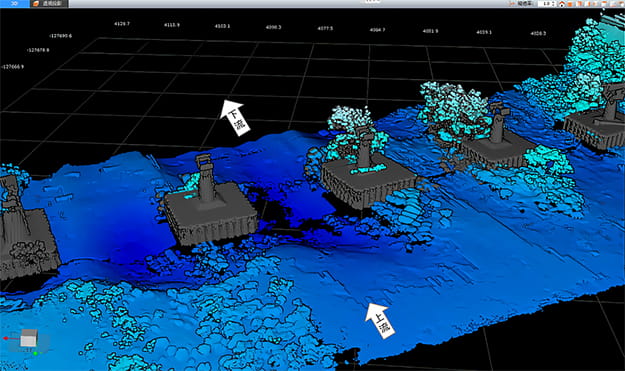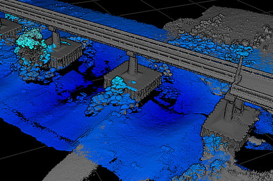 UAVグリーンレーザで橋脚周りの河床洗掘状況を3次元取得