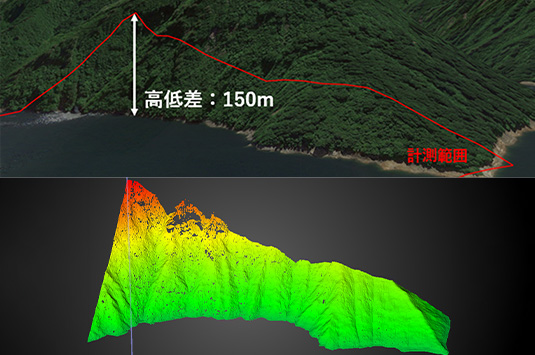 高低差150m危険なダム急傾斜の地形をUAVレーザで安全に計測